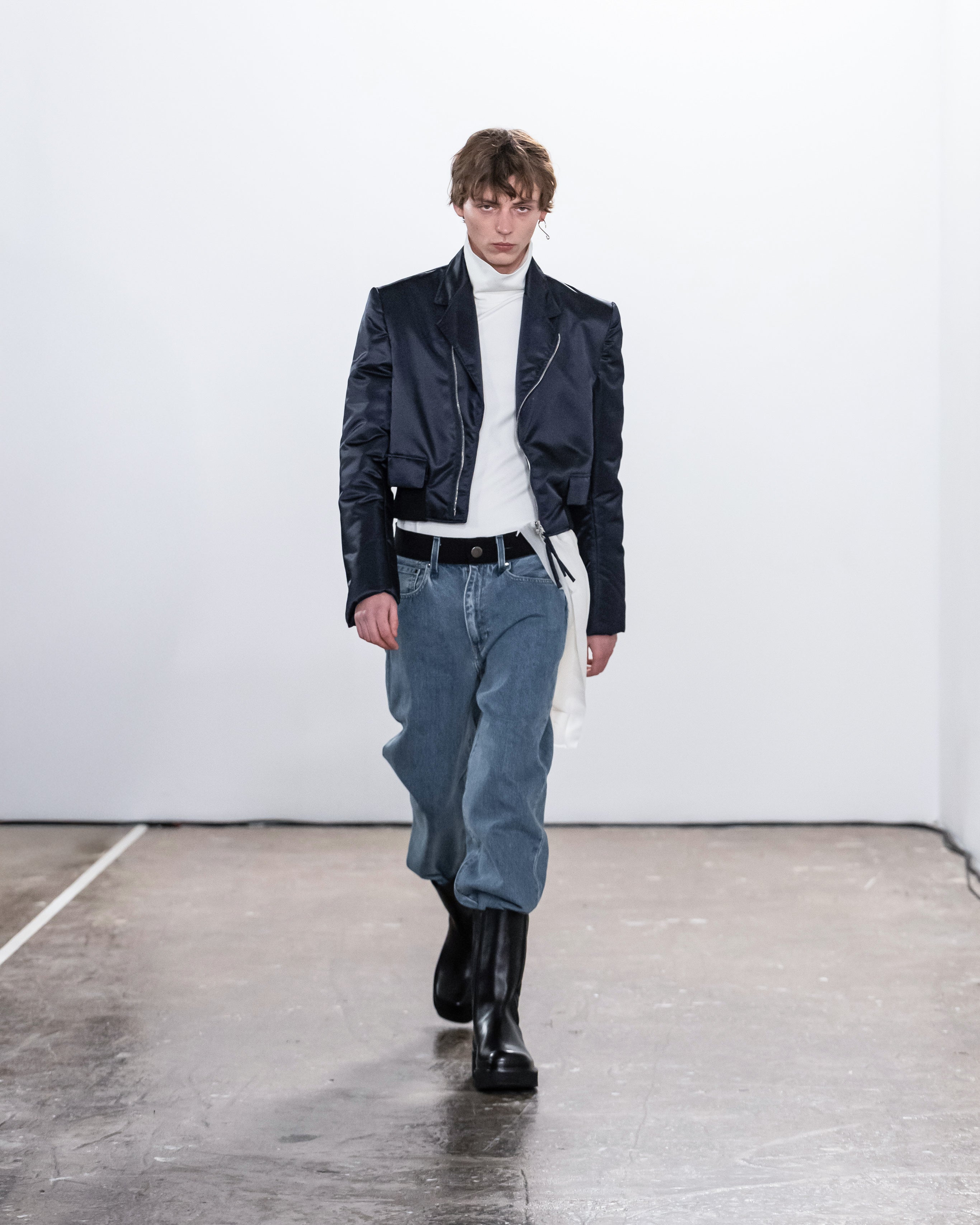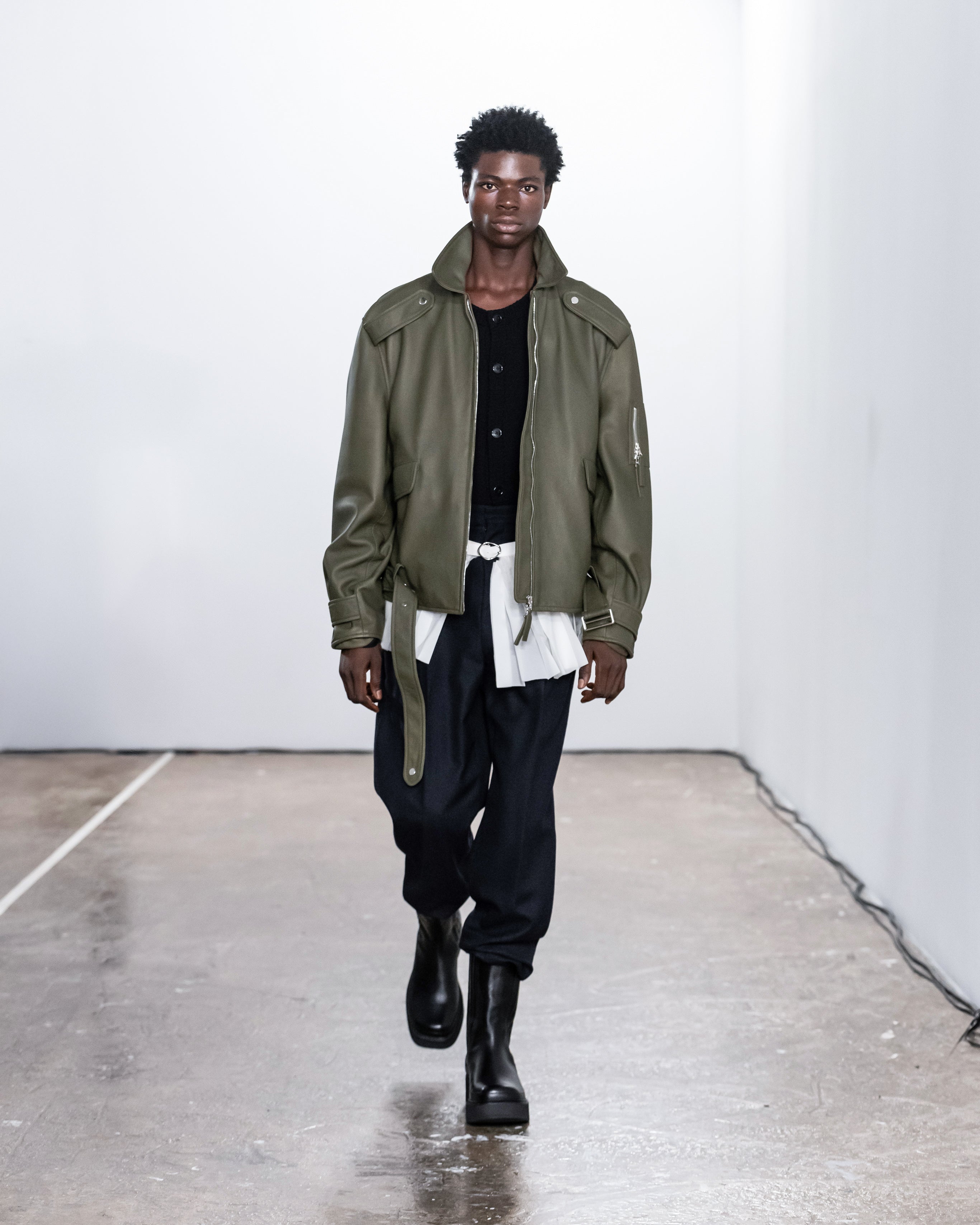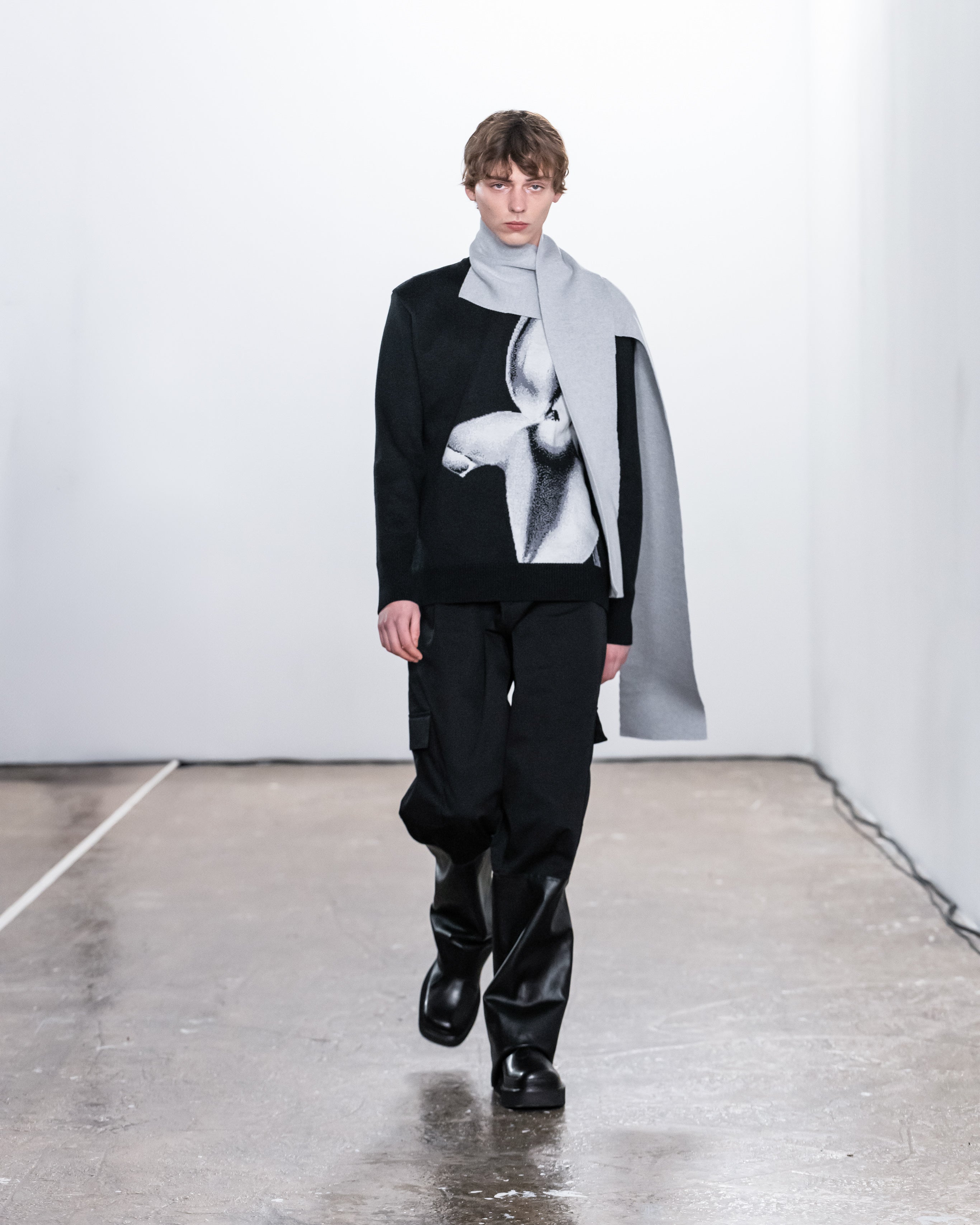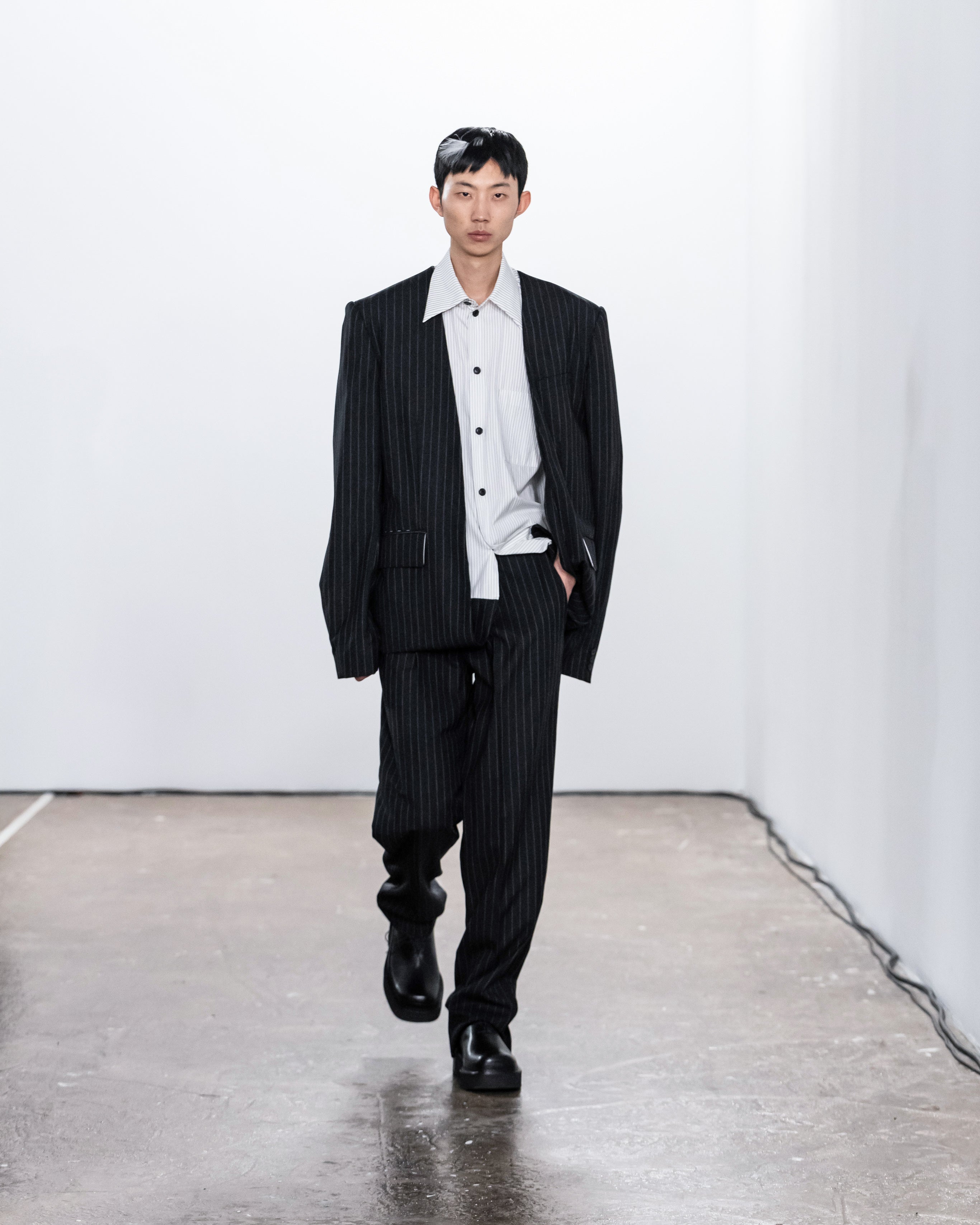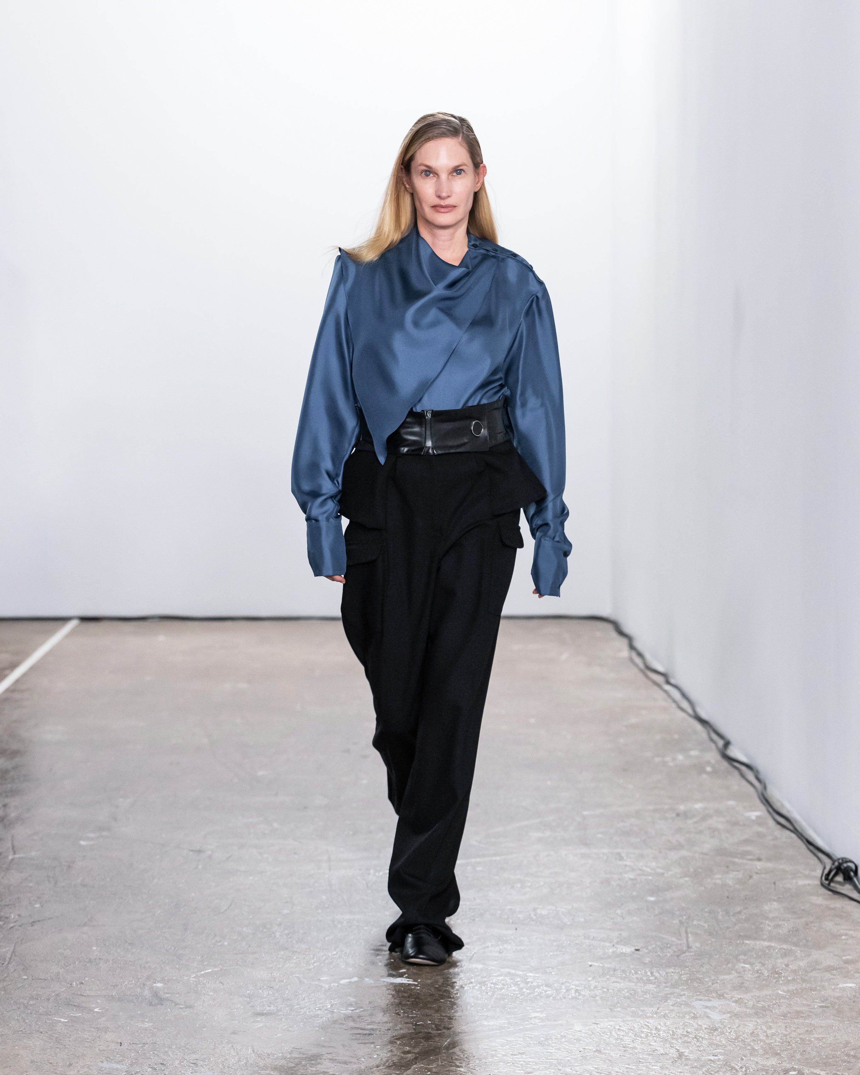 Les créations incarnent ce récit à travers une fusion de lignes nettes et structurées et de formes douces et fluides, représentant nos dualités intérieures. Le drapé romantique rencontre la résistance des coupes, tandis que les textures superposées et les coupes asymétriques symbolisent la complexité de l'identité. Plis complexes, détails cachés et imperfections délibérées soulignent la beauté de l'impermanence et de l'évolution.