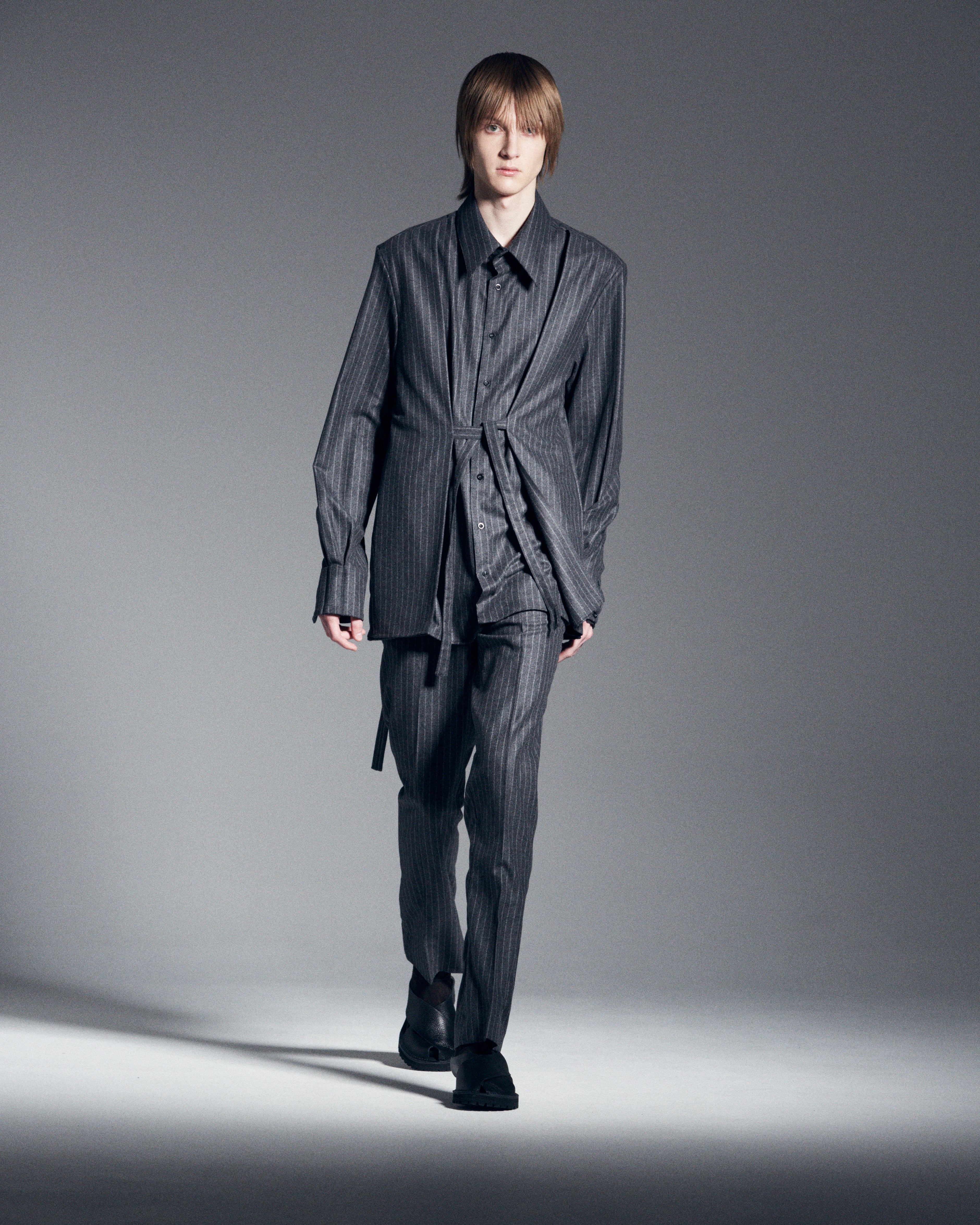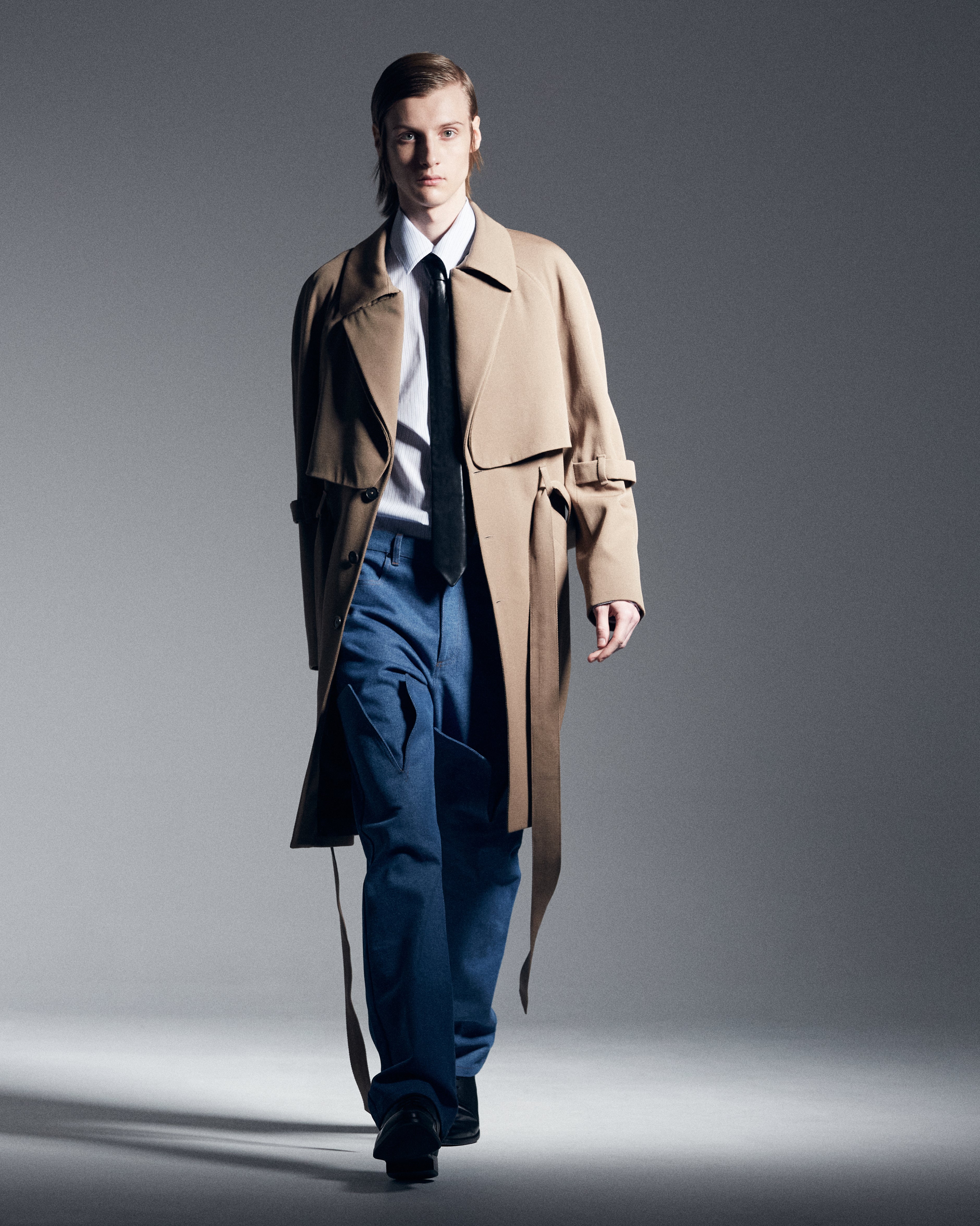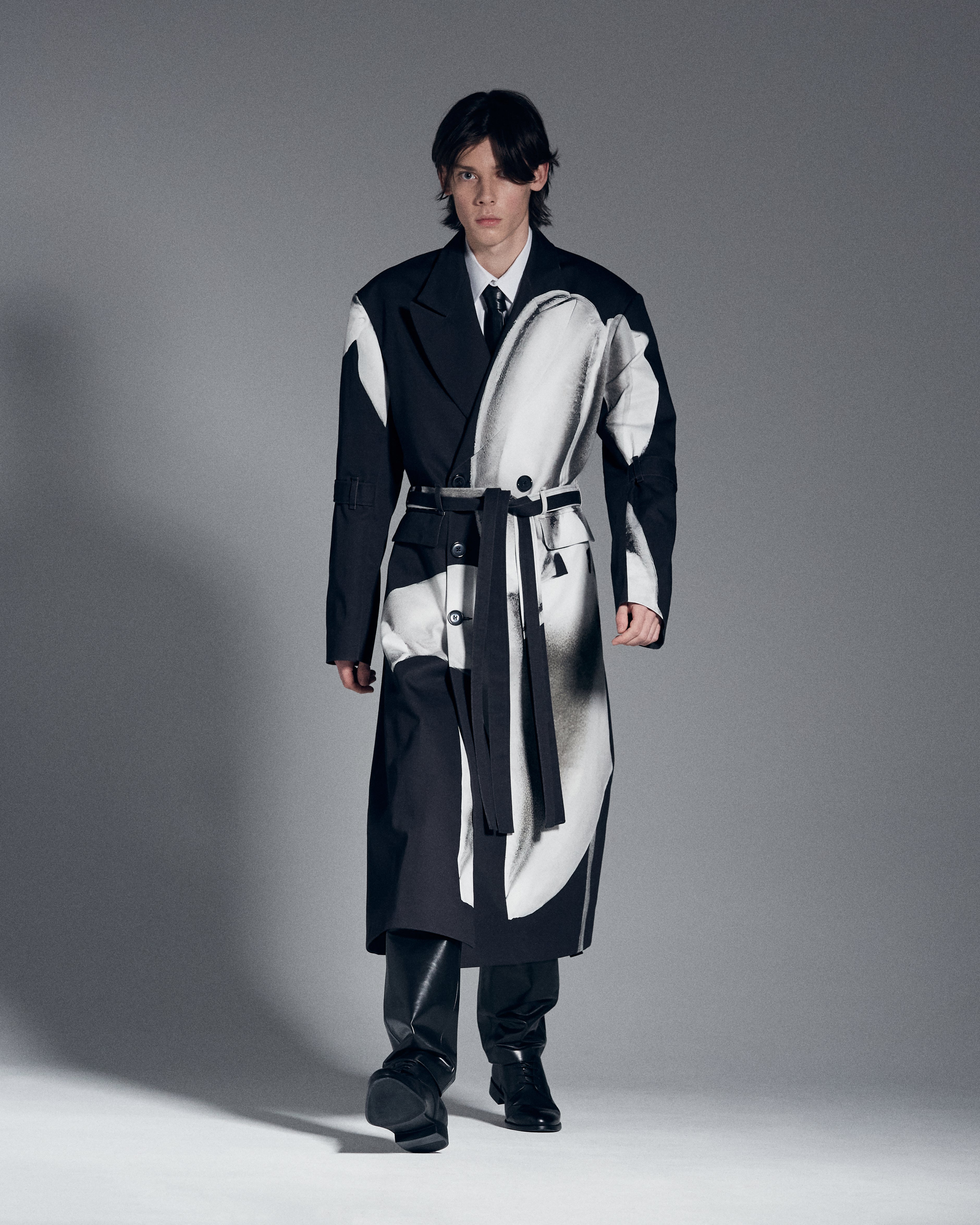 During my creative research, I looked at 18th-century Romanticism as the art movement also focuses on emotion and imagination. The Painting Wanderer above the Sea of Fog by Caspar Friedrich has been on the wall of the studio for as long as I remember. Friedrich’s paintings are characterized by their focus on the relationship between nature, humanity, and the divine. He is also known for his use of symbolic elements and his exploration of the human psyche. With the music “Flower boys – Saint Ivory” in the background, the story of the fall-winter collection was written: Waterboys, the strong sensitive.”