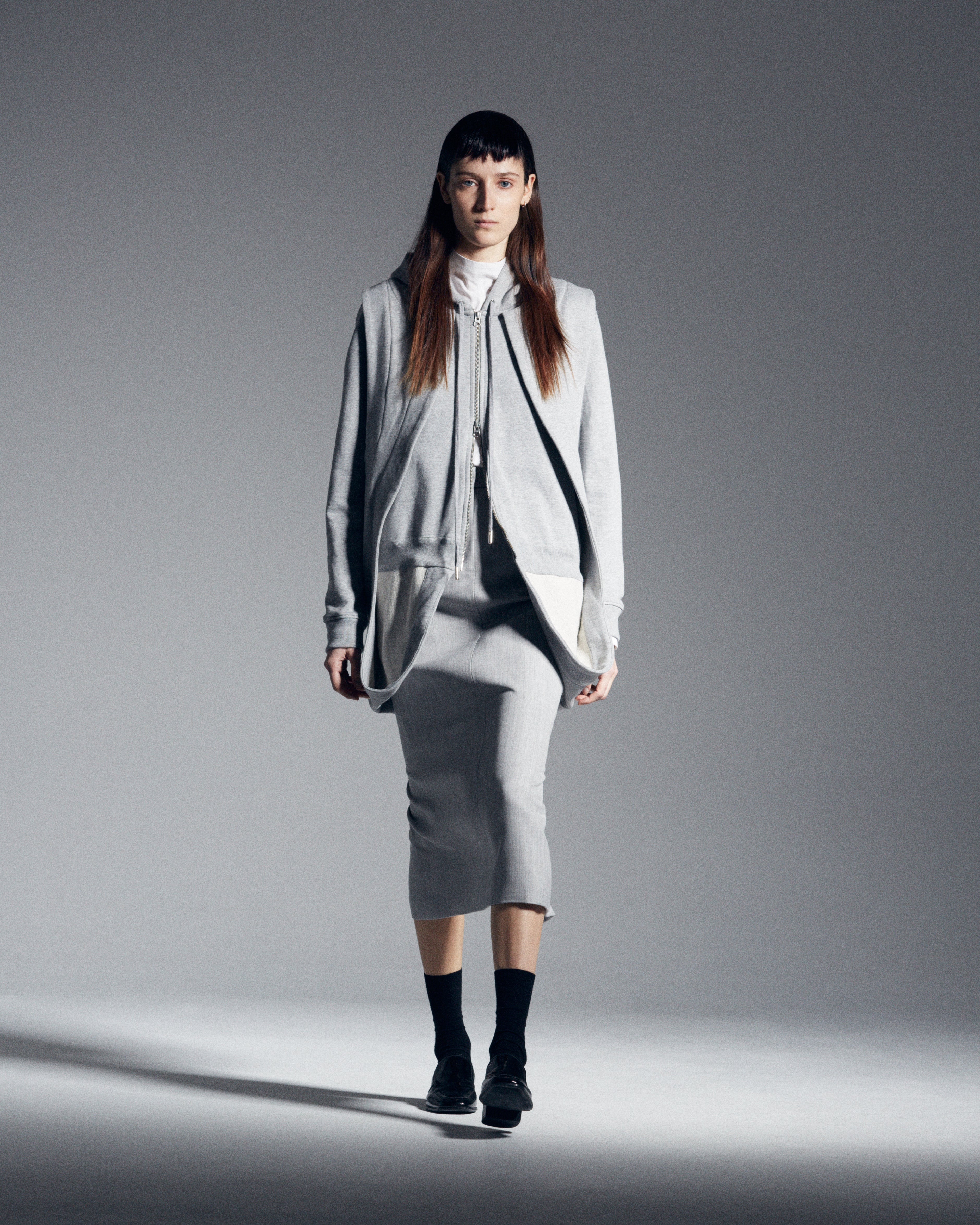 The fall-winter 2023 collection embodies the duality and explores the water’s multiple faces. Prints and shapes inspired by German Photographer Caroline Koenigs artwork translate into knitted jacquard.