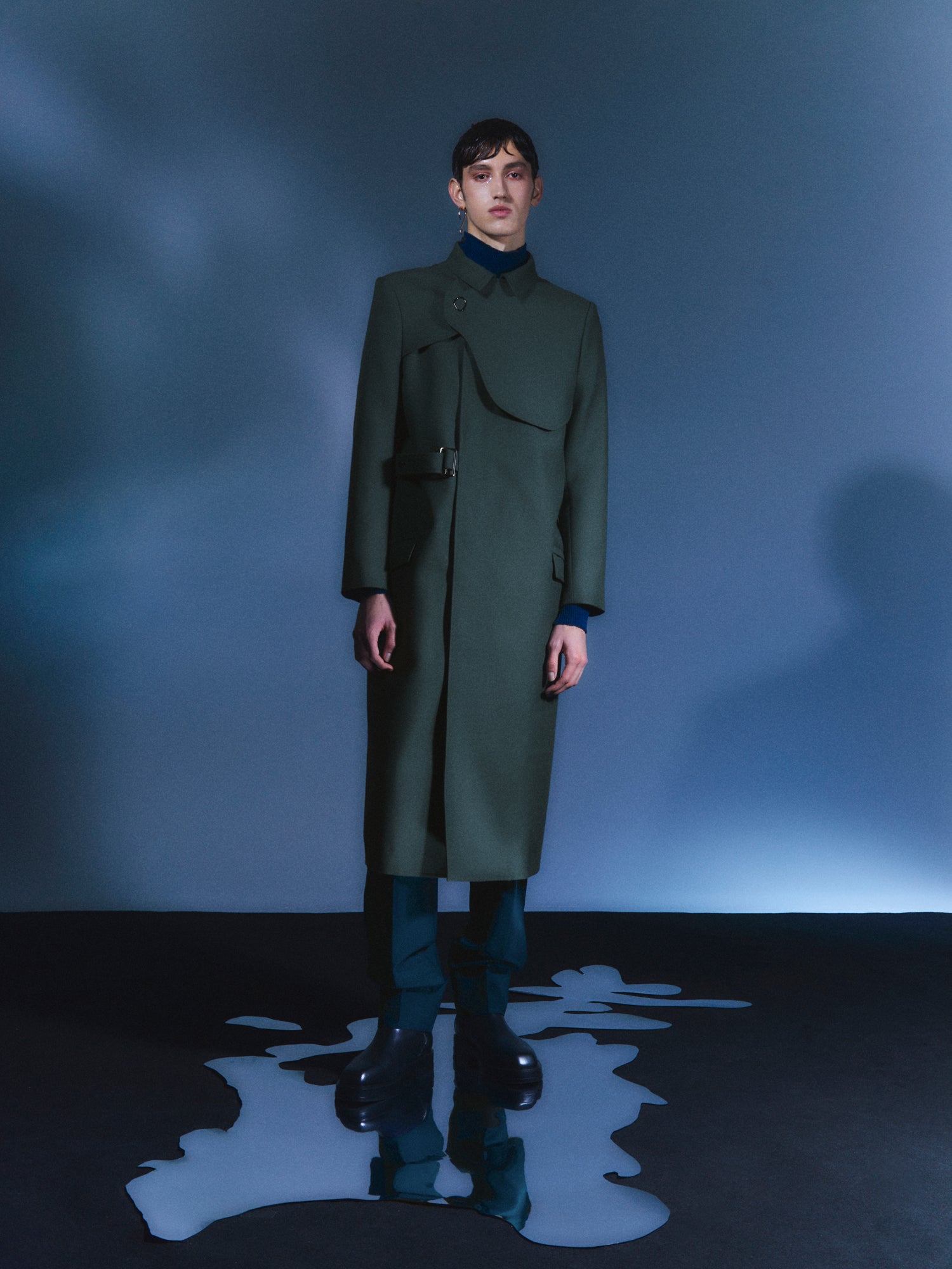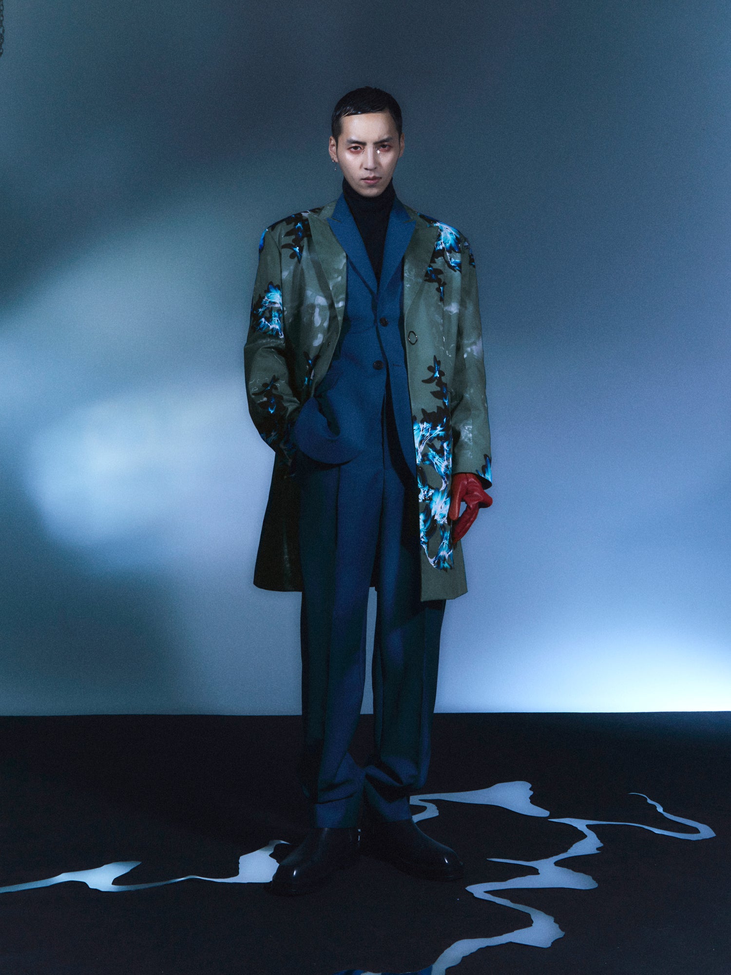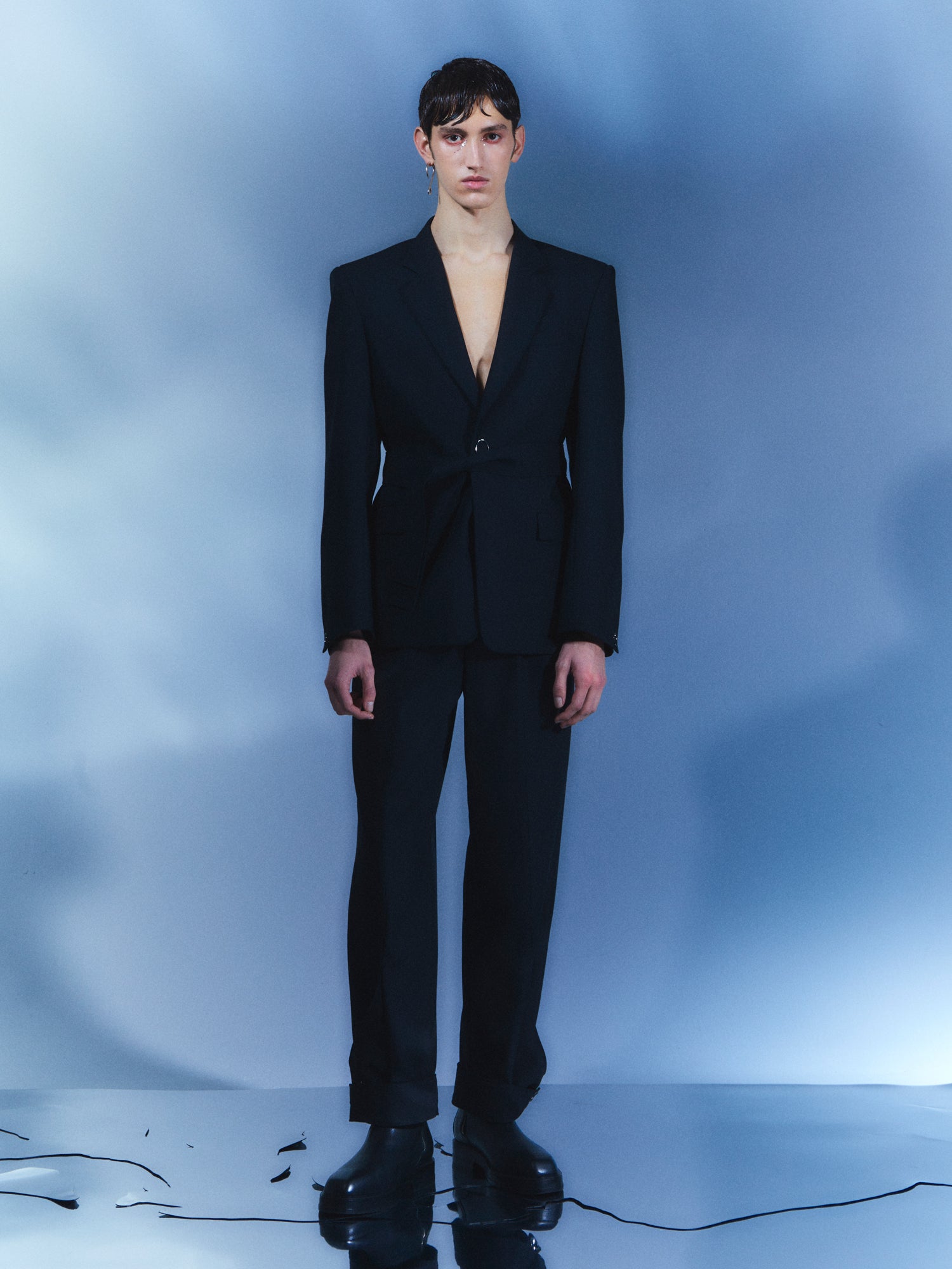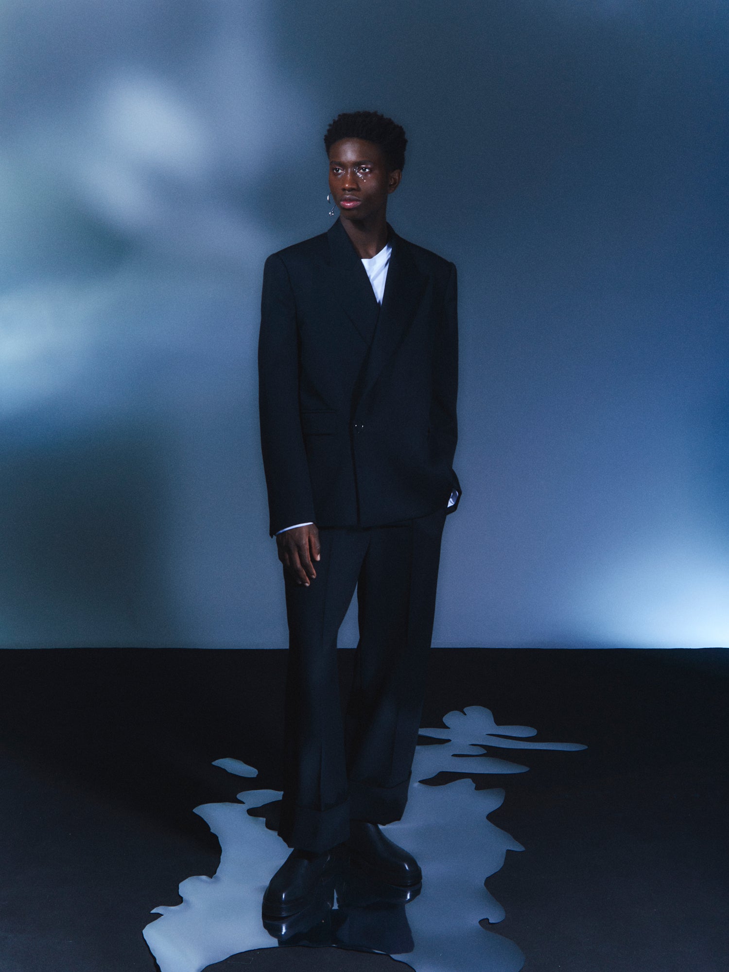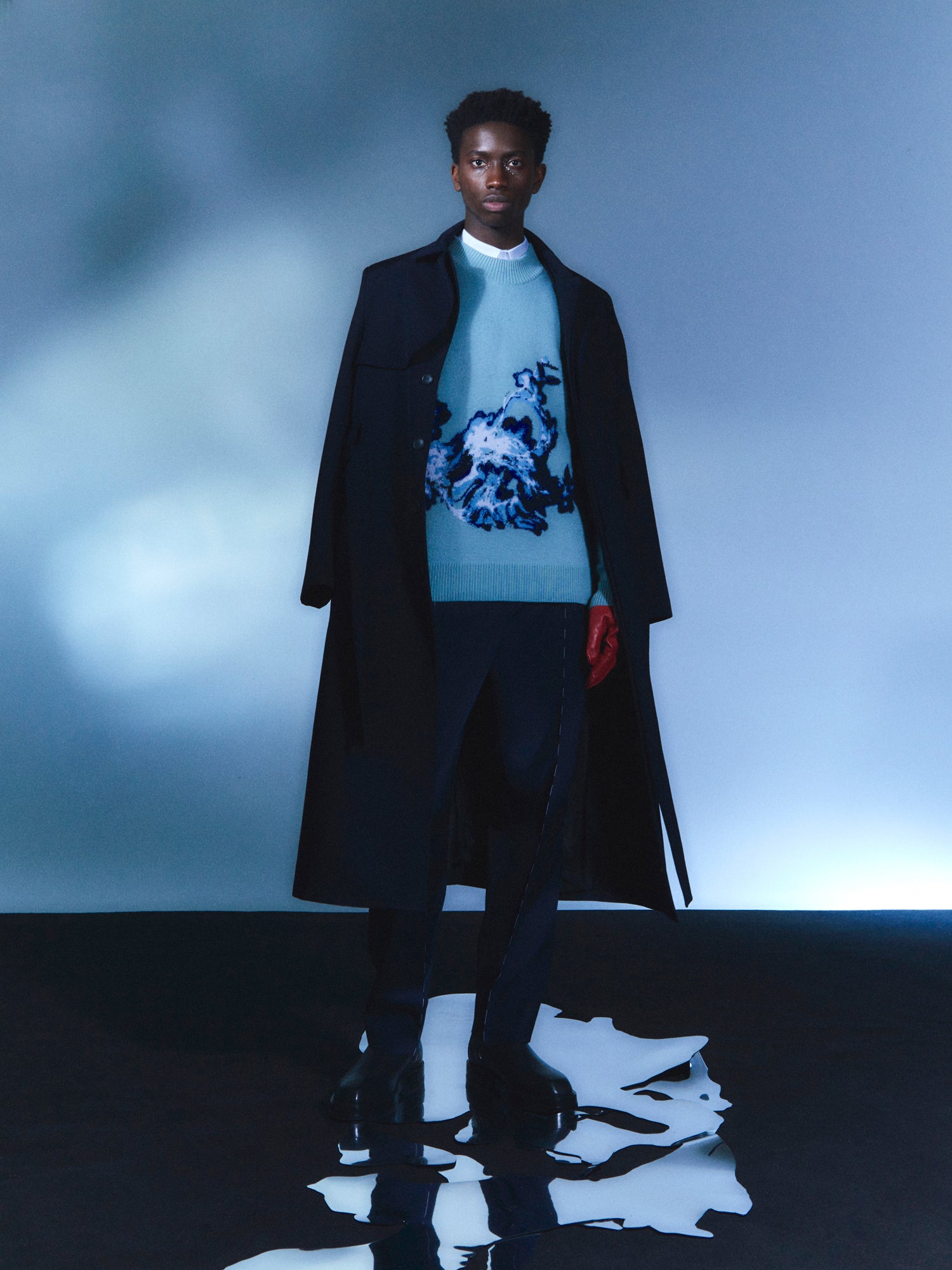Au cours de mes recherches créatives, je me suis intéressé au romantisme du XVIIIe siècle, mouvement artistique qui privilégie également l'émotion et l'imagination. Le tableau « Vagabond au-dessus de la mer de brouillard » de Caspar Friedrich est accroché au mur de mon atelier depuis aussi longtemps que je me souvienne. Les peintures de Friedrich se caractérisent par leur intérêt pour la relation entre la nature, l'humanité et le divin. Il est également connu pour son utilisation d'éléments symboliques et son exploration de la psyché humaine. Sur la musique « Flowers – Saint Ivory » en fond sonore, l'histoire de la collection automne-hiver s'est écrite : Waterboys, the strong sensitive.