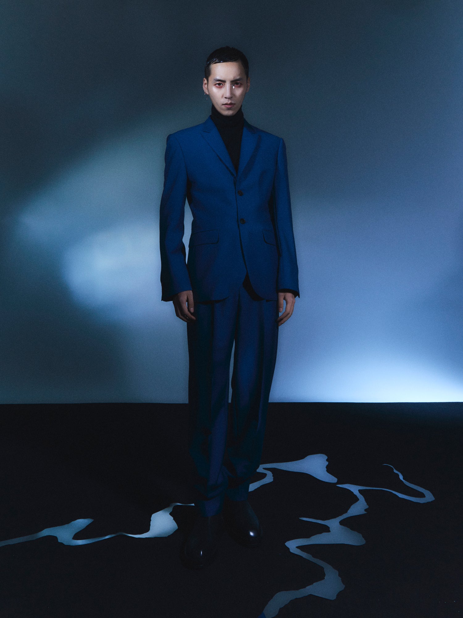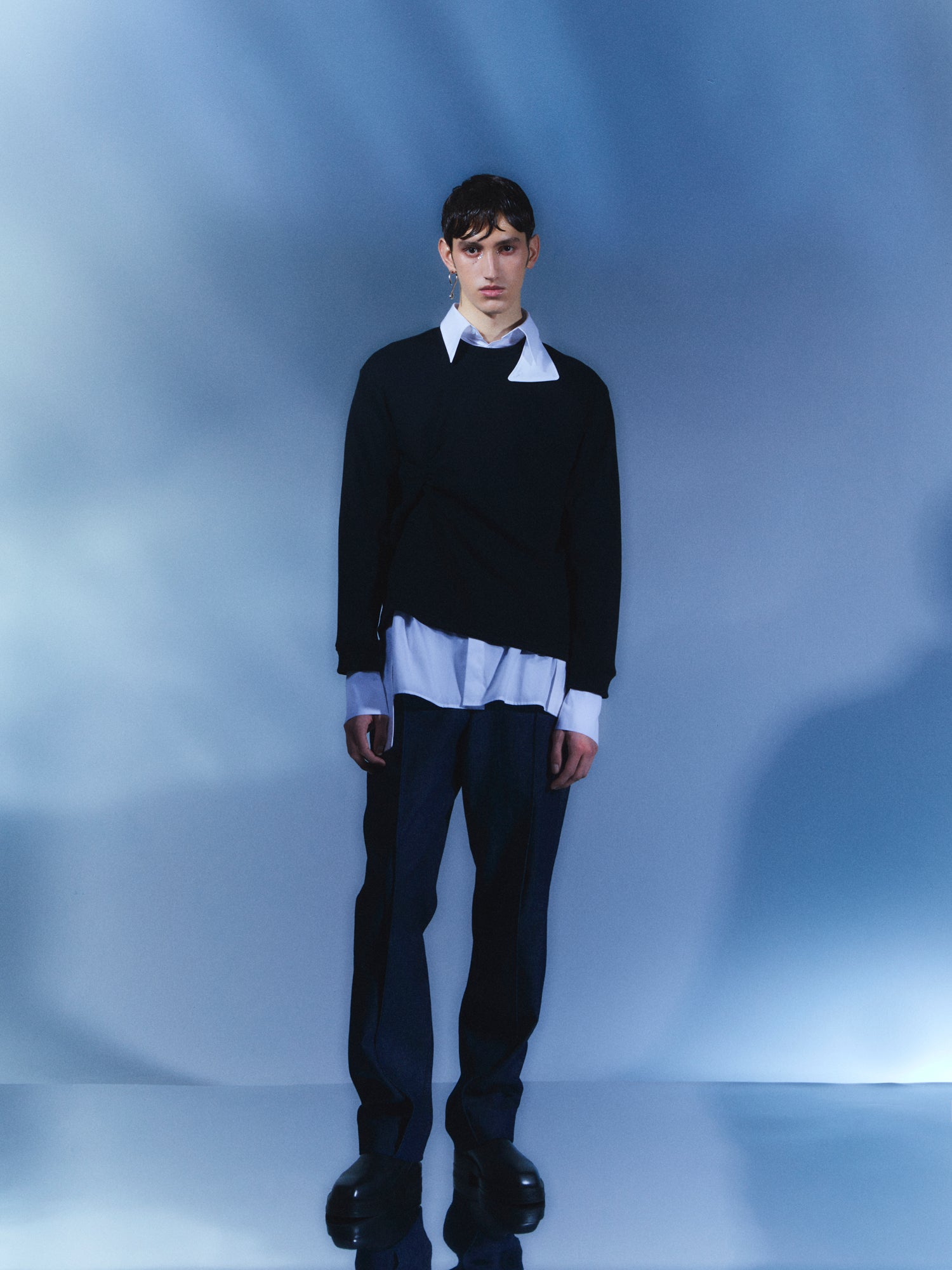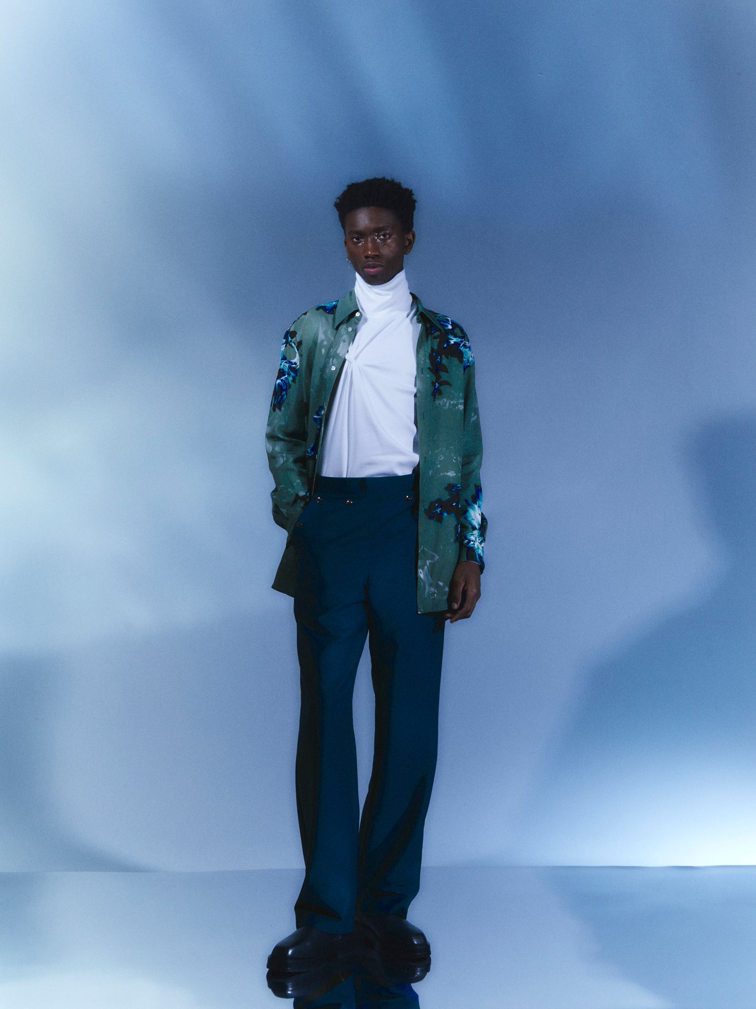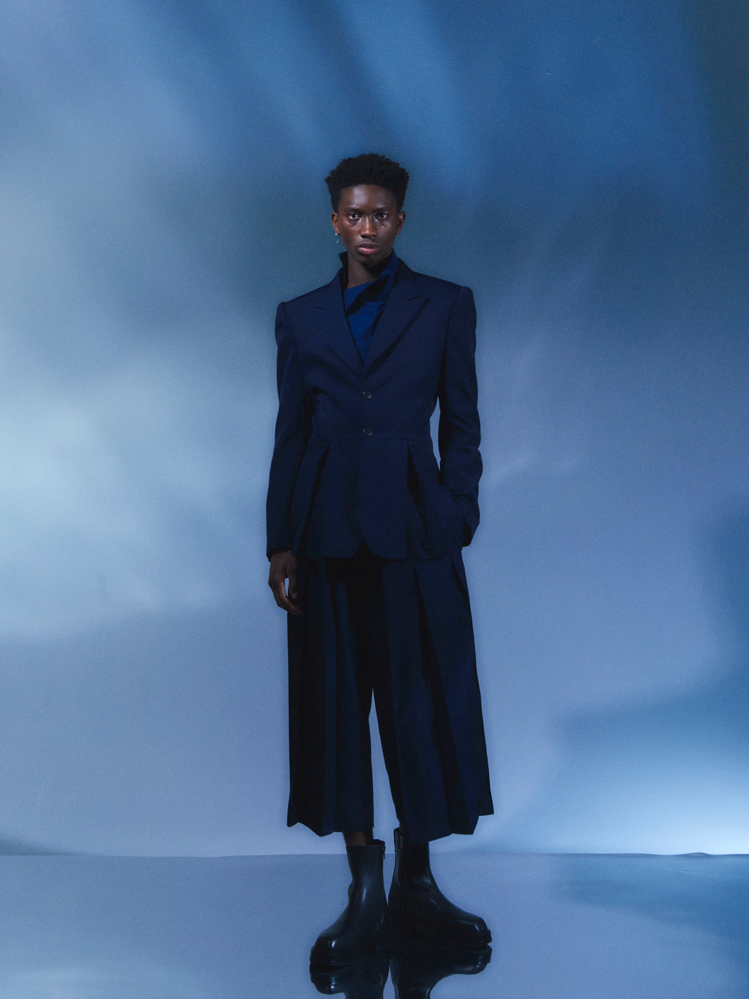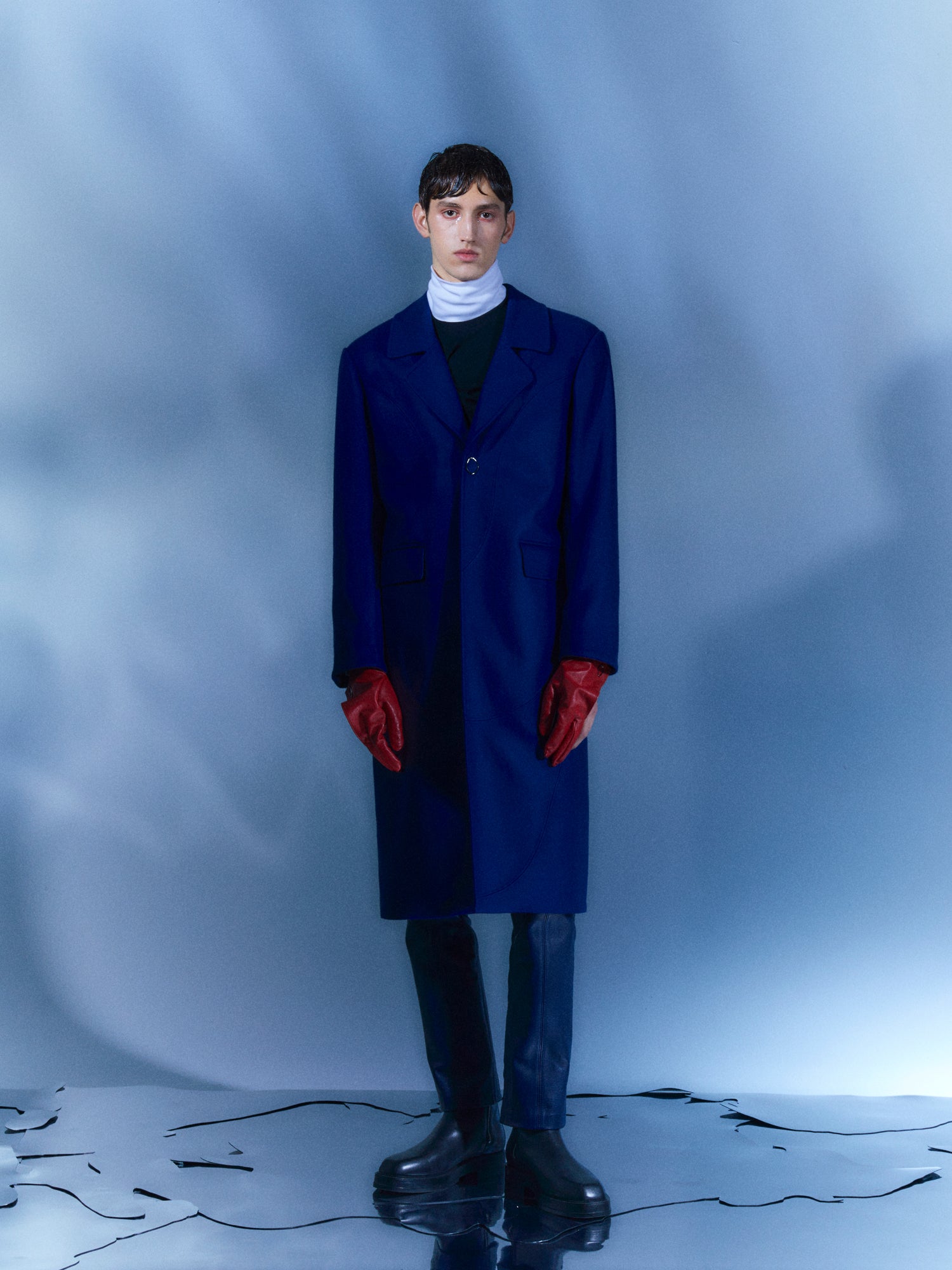 Au cours de mes recherches créatives, je me suis intéressé au romantisme du XVIIIe siècle, mouvement artistique qui privilégie également l'émotion et l'imagination. Le tableau « Vagabond au-dessus de la mer de brouillard » de Caspar Friedrich est accroché au mur de mon atelier depuis aussi longtemps que je me souvienne. Les peintures de Friedrich se caractérisent par leur intérêt pour la relation entre la nature, l'humanité et le divin. Il est également connu pour son utilisation d'éléments symboliques et son exploration de la psyché humaine. Sur la musique « Flowers – Saint Ivory » en fond sonore, l'histoire de la collection automne-hiver s'est écrite : Waterboys, the strong sensitive.